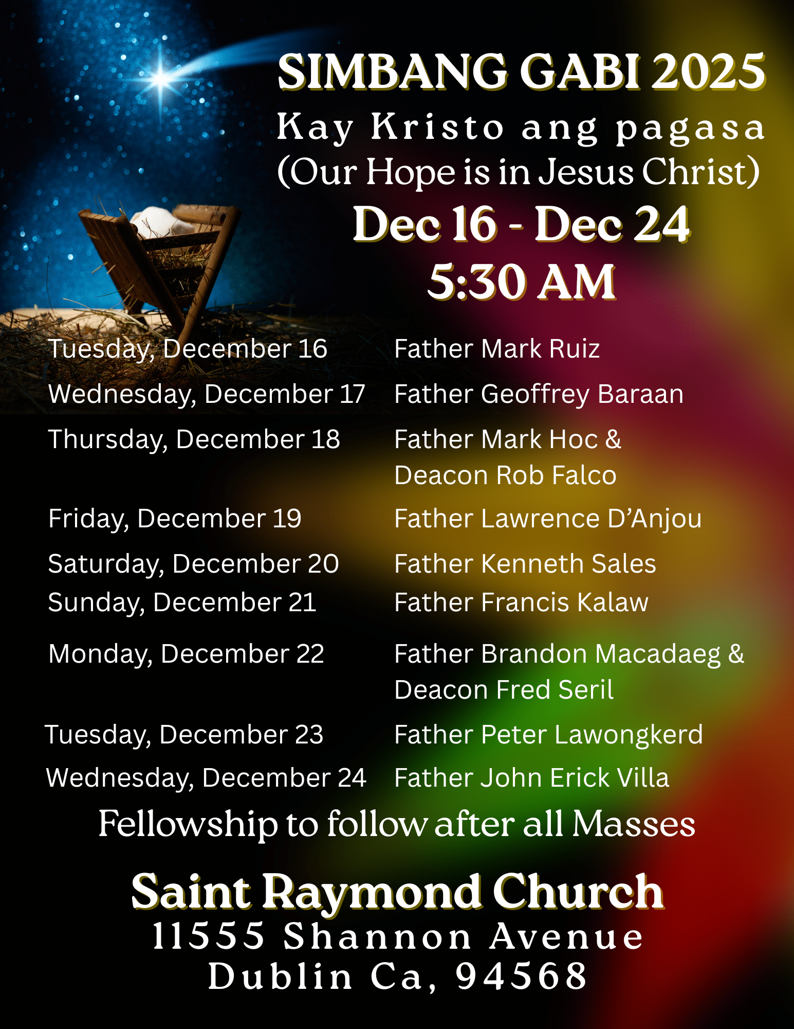 Simbang Gabi (St. Raymond, Dublin) Dec 16, 2025 @ 5:30 pm - 6:30 pm